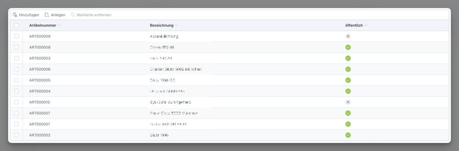 - Um einen Artikel auf „nicht öffentlich“ zu setzen, betätigen Sie die Schaltfläche (grüner Punkt) neben dem Artikel.